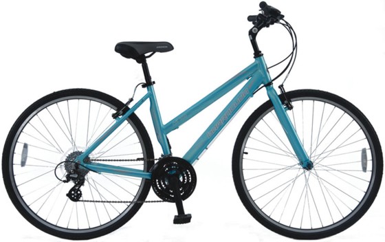 Women's alloy trekking frame with straight blade steel fork Shimano 24 speed gears with EZ Fire shifters Alloy wheels with QR hubs & hybrid tyres Adjustable alloy handlebar stem Powerful alloy V brakes Non-slip pedals Comfort saddle Frame size available 17" (women's medium)