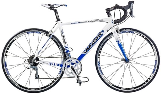 price Ultra-lightweight Triple Butted Hydro-formed aluminium race frame Carbon fibre forks with alloy steerer & semi-integrated headset Shimano 18 speed gears with Sora derailleur & STI dual control shifters FSA Tempo alloy 50/34 compact chainset with alloy cranks & 9 speed 12/25 cassette freewheel Double wall alloy 24 hole wheel rims & Schwalbe Blizzard 700 x 23c road tyres Alloy dual pivot road caliper brakes & Shimano Sora levers Oversized alloy handlebar & ahead stem with cork handlebar tape Selle Italia saddle with alloy micro-adjust seatpost Frame sizes available 47.5cm (XS/S) & 54cm (M/L) To find out more about eminent Italian bike manufacturer Whistle visit www.whistlebikes.com "Modoc - Claris"